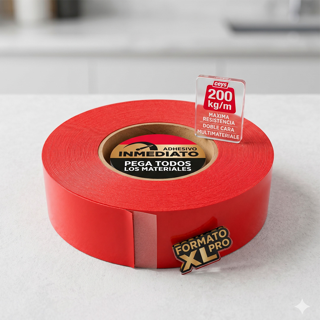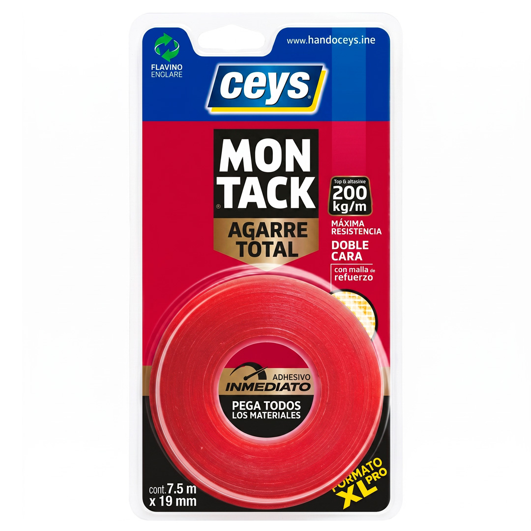 La cinta de montaje Ceys Montack Agarre Total Inmediato es la solución profesional para quienes buscan resistencia extrema y limpieza en sus proyectos. Gracias a su exclusiva malla de refuerzo y su tecnología de pegado instantáneo, esta cinta sustituye a los tornillos en prácticamente cualquier superficie.