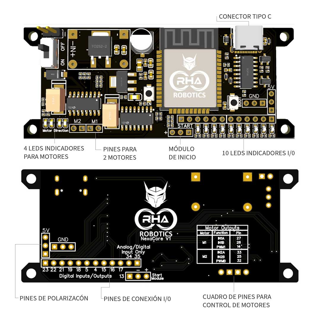 Diseñada especialmente para proyectos de robótica avanzada, la NEXACORE es la solución ideal para quienes buscan potencia, precisión y conectividad en un solo dispositivo.